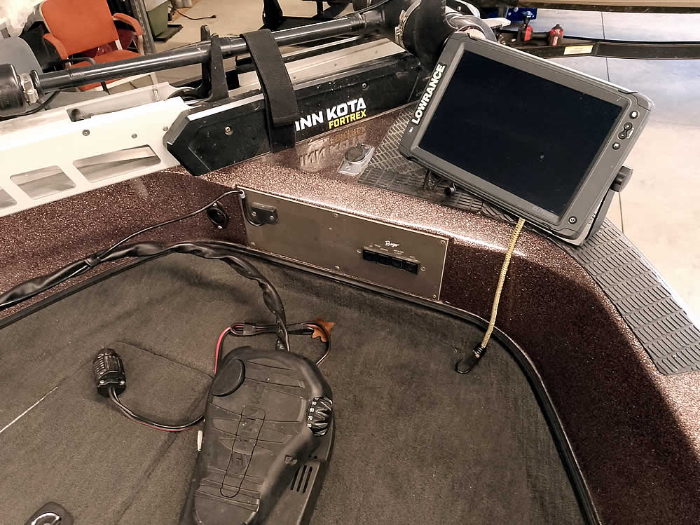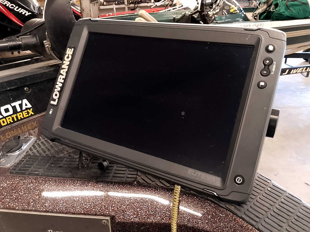- Lowrance Elite-12 sonar GPS at the bow
