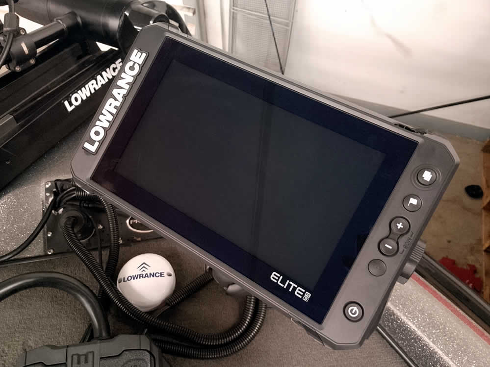 - Lowrance Elite FS-9 sonar GPS at the bow