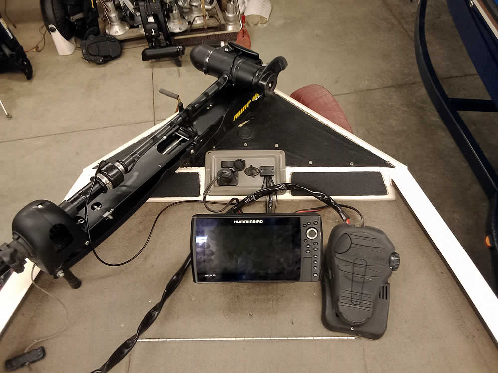 - Humminbird Helix-10 sonar GPS at the bow